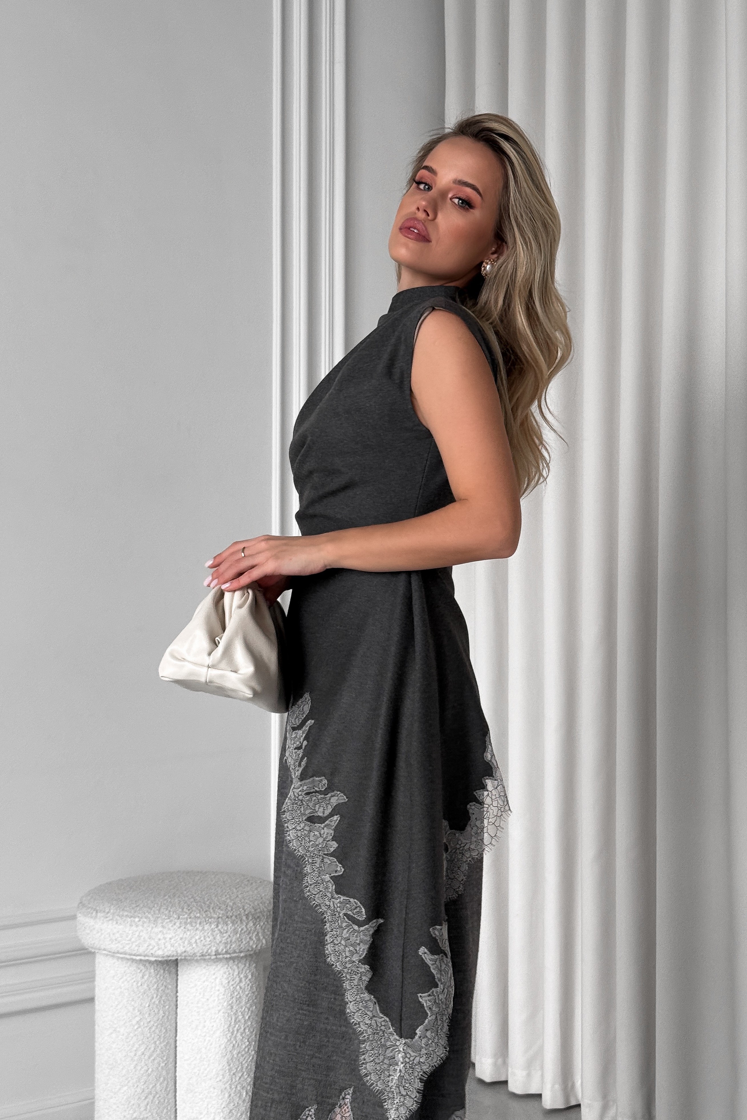 Асимметричный топ с драпировкой и кружевом