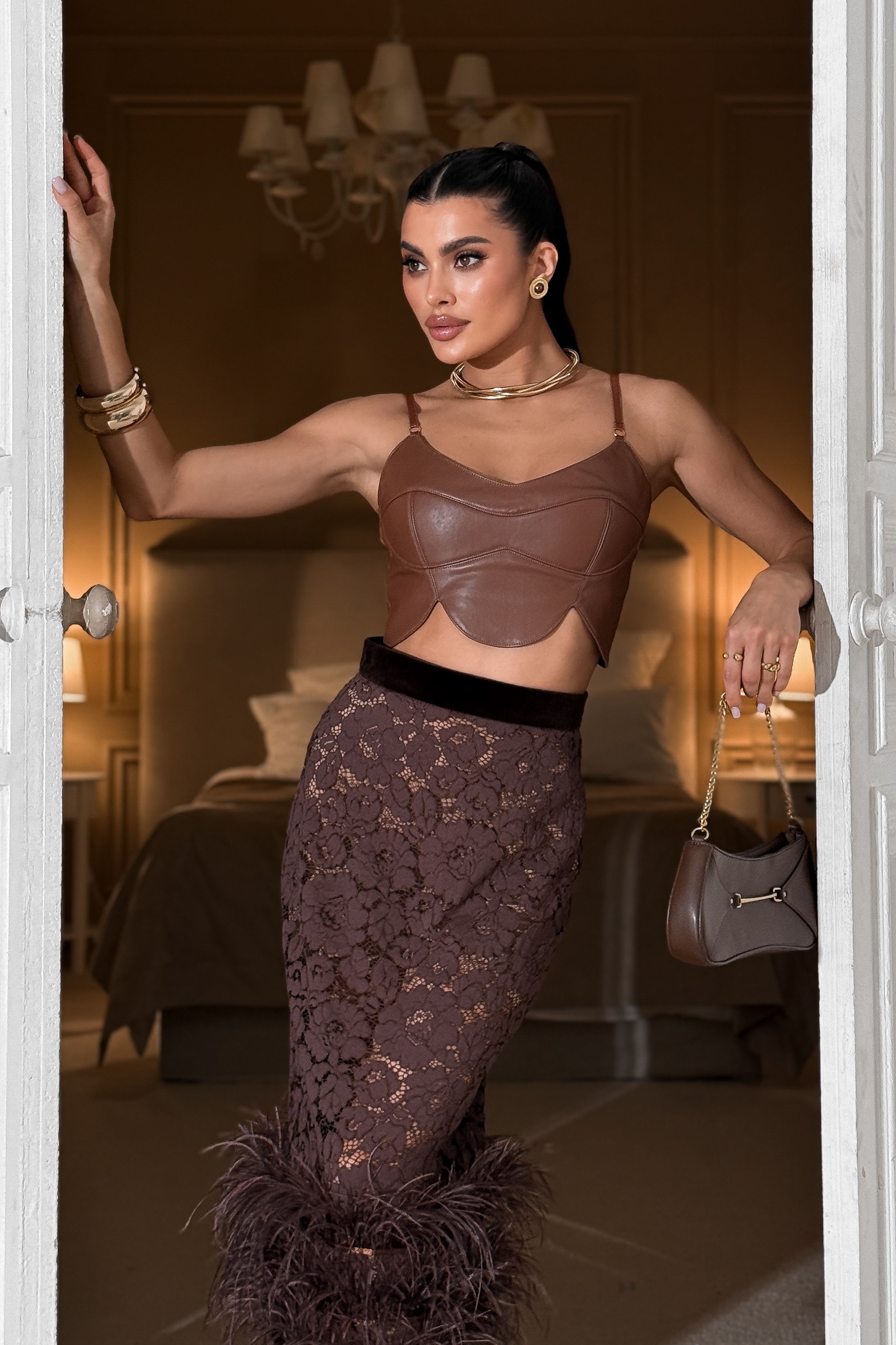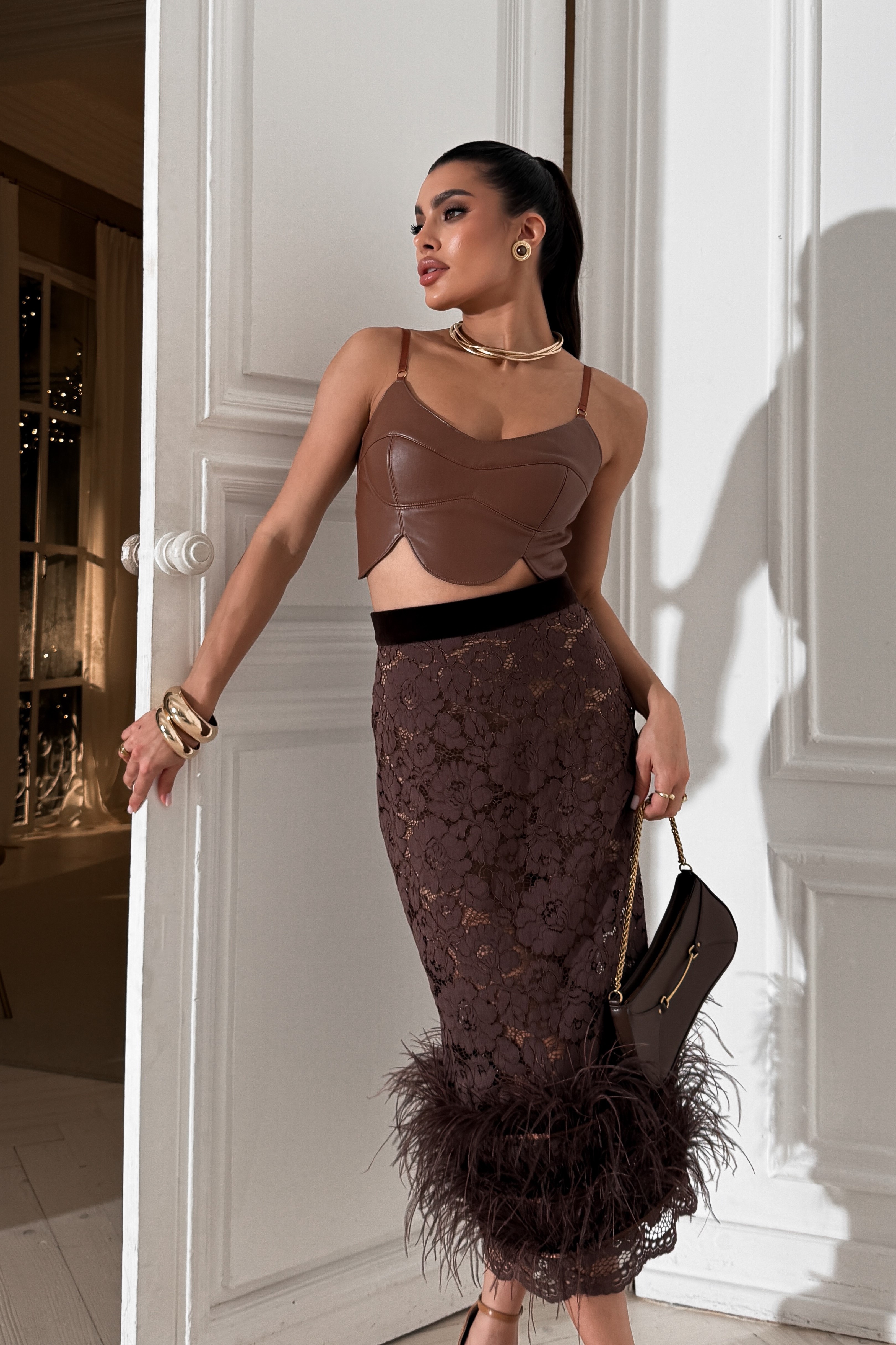 Faux leather crop top with straps “Rose Petals”
