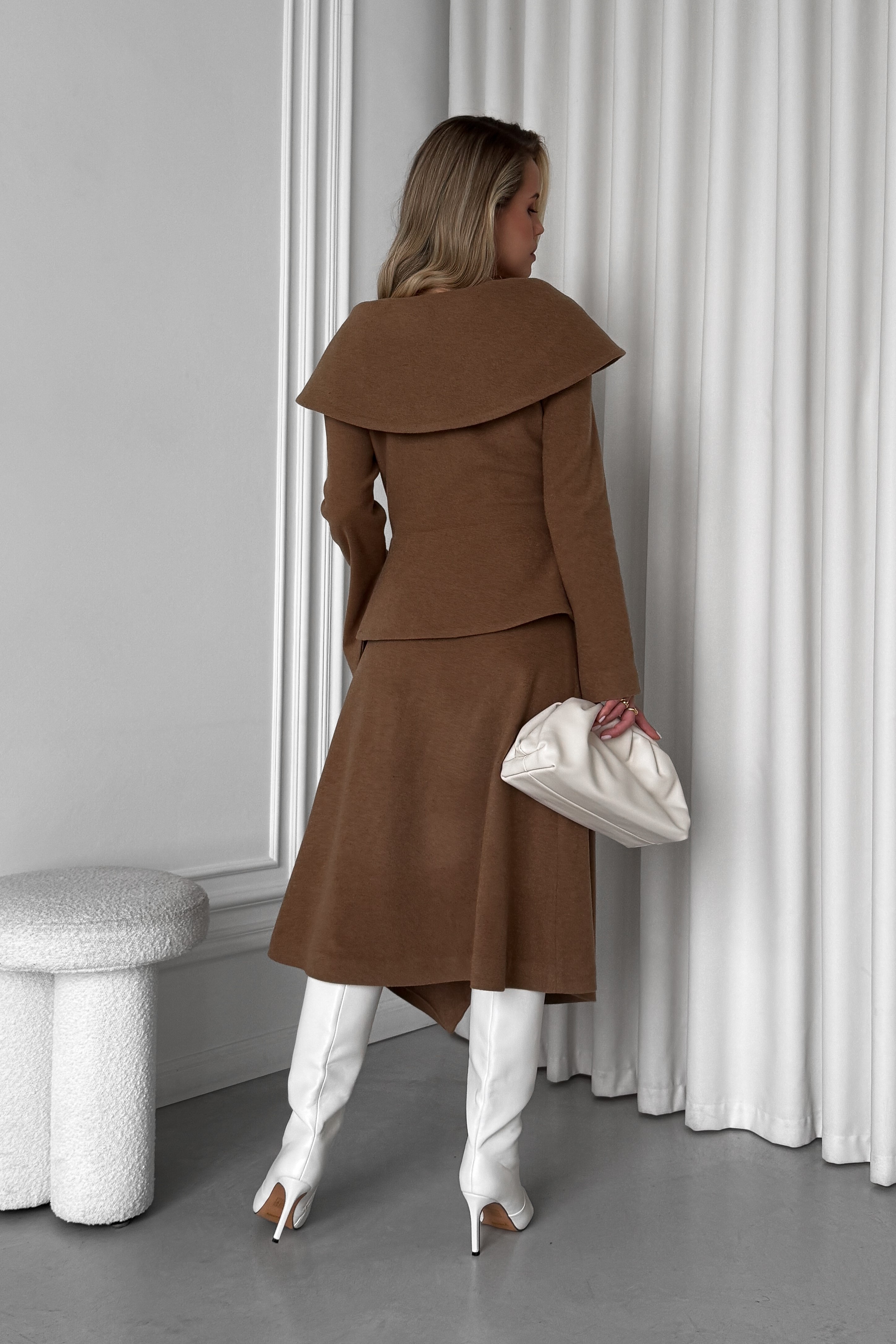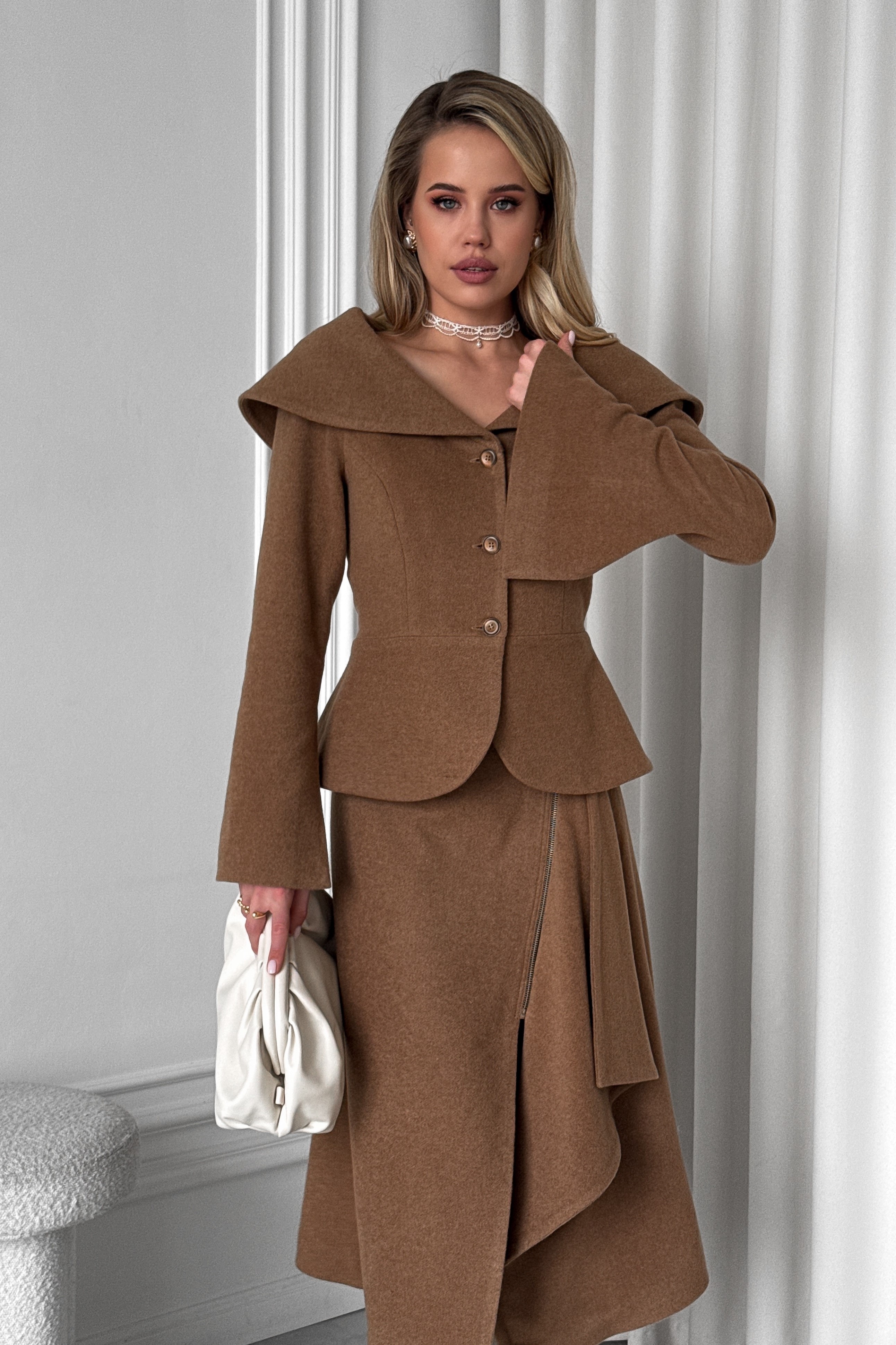 Пиджак с баской с широким воротником из итальянской шерстяной ткани
