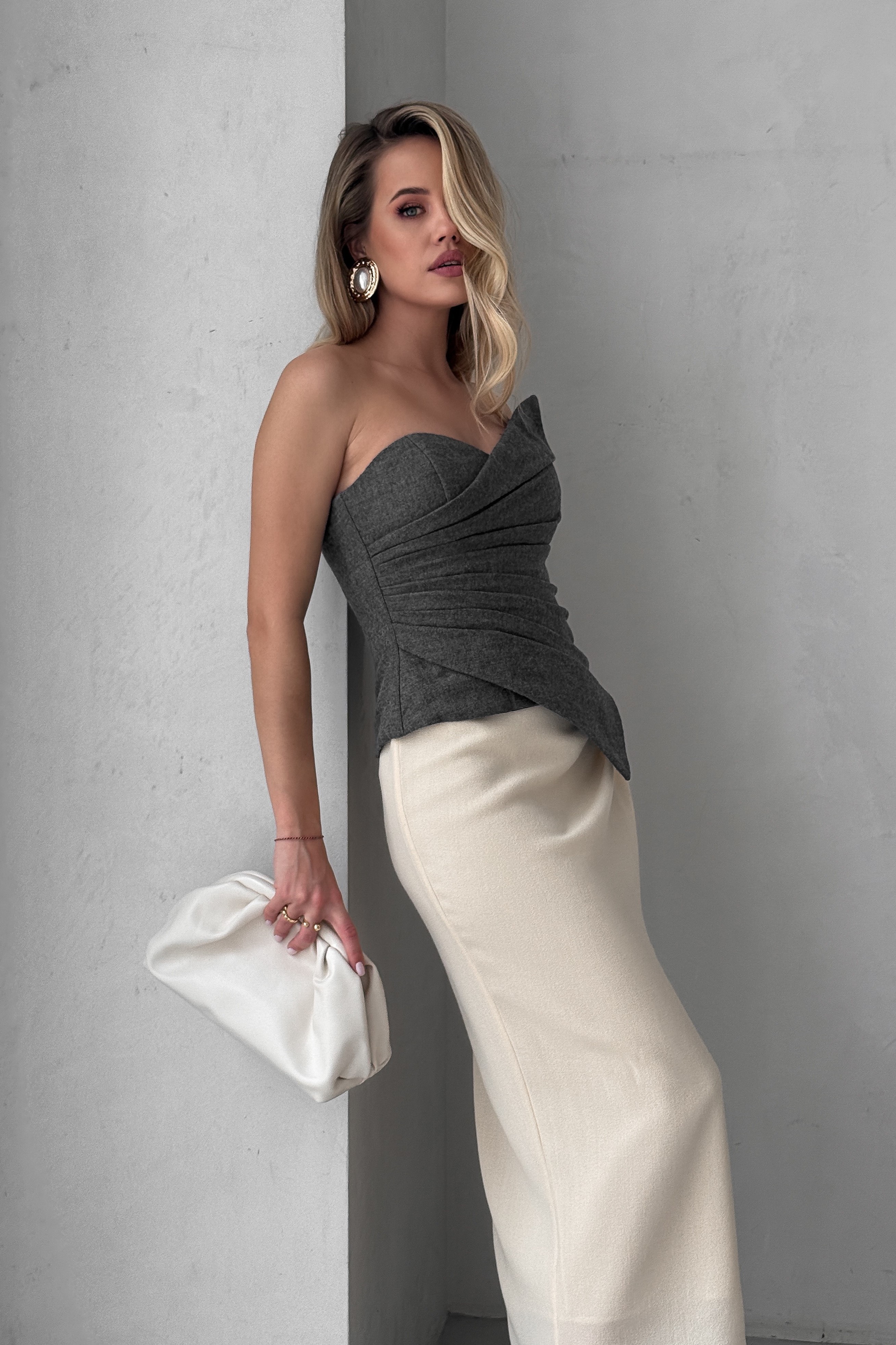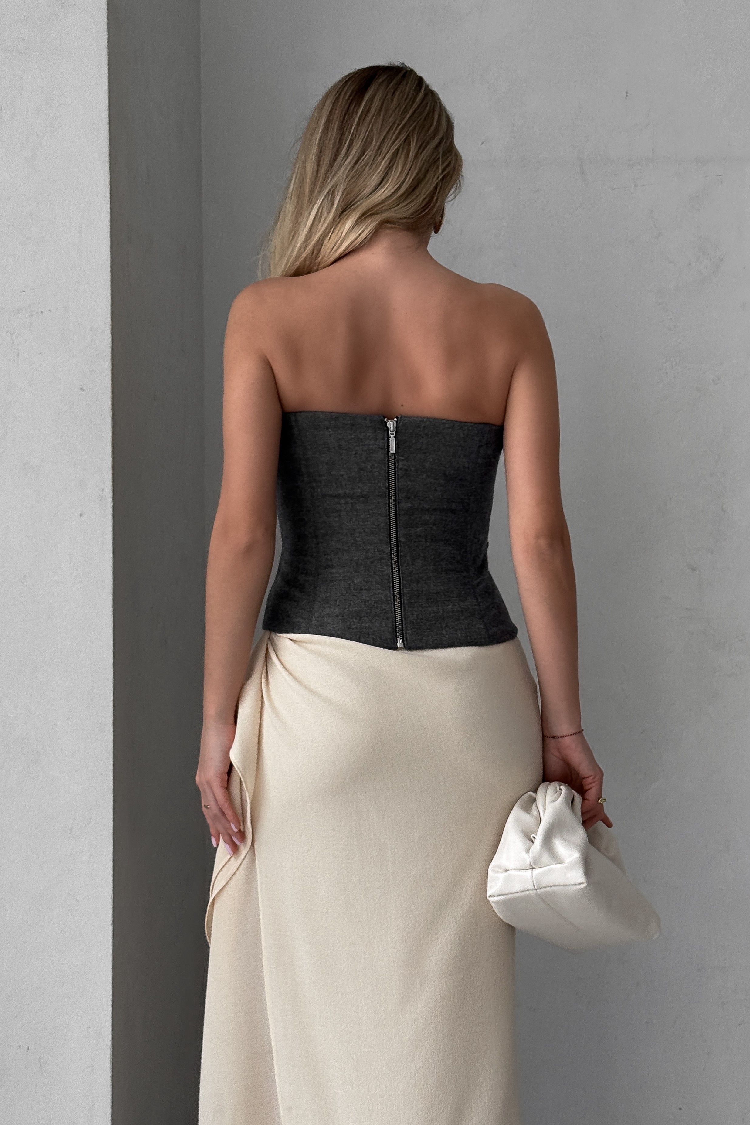 - Дизайн позволяет носить юбку с разрезом и воланами как с левой, так и с правой стороны