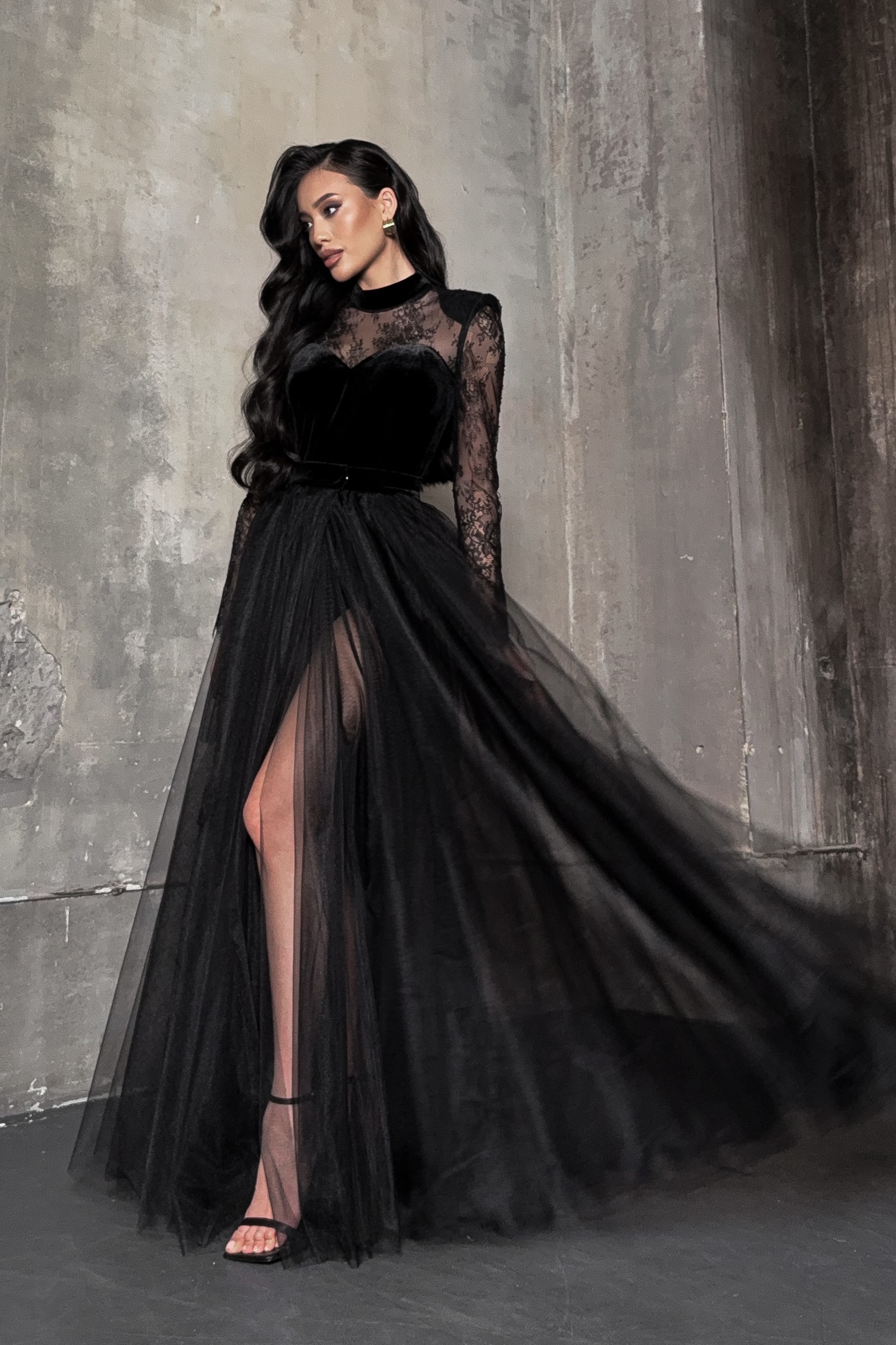 Длинная юбка пачка на запах из фатина с бархатным поясом, Sarah Berlin