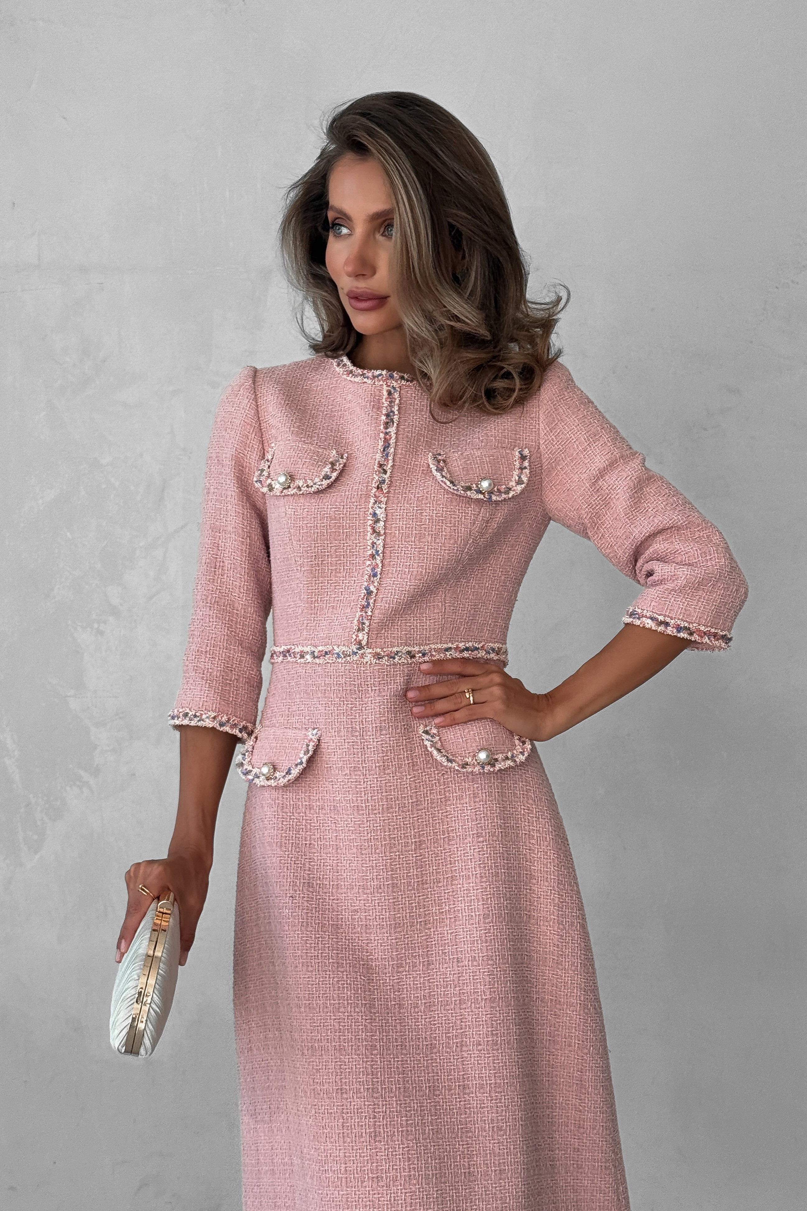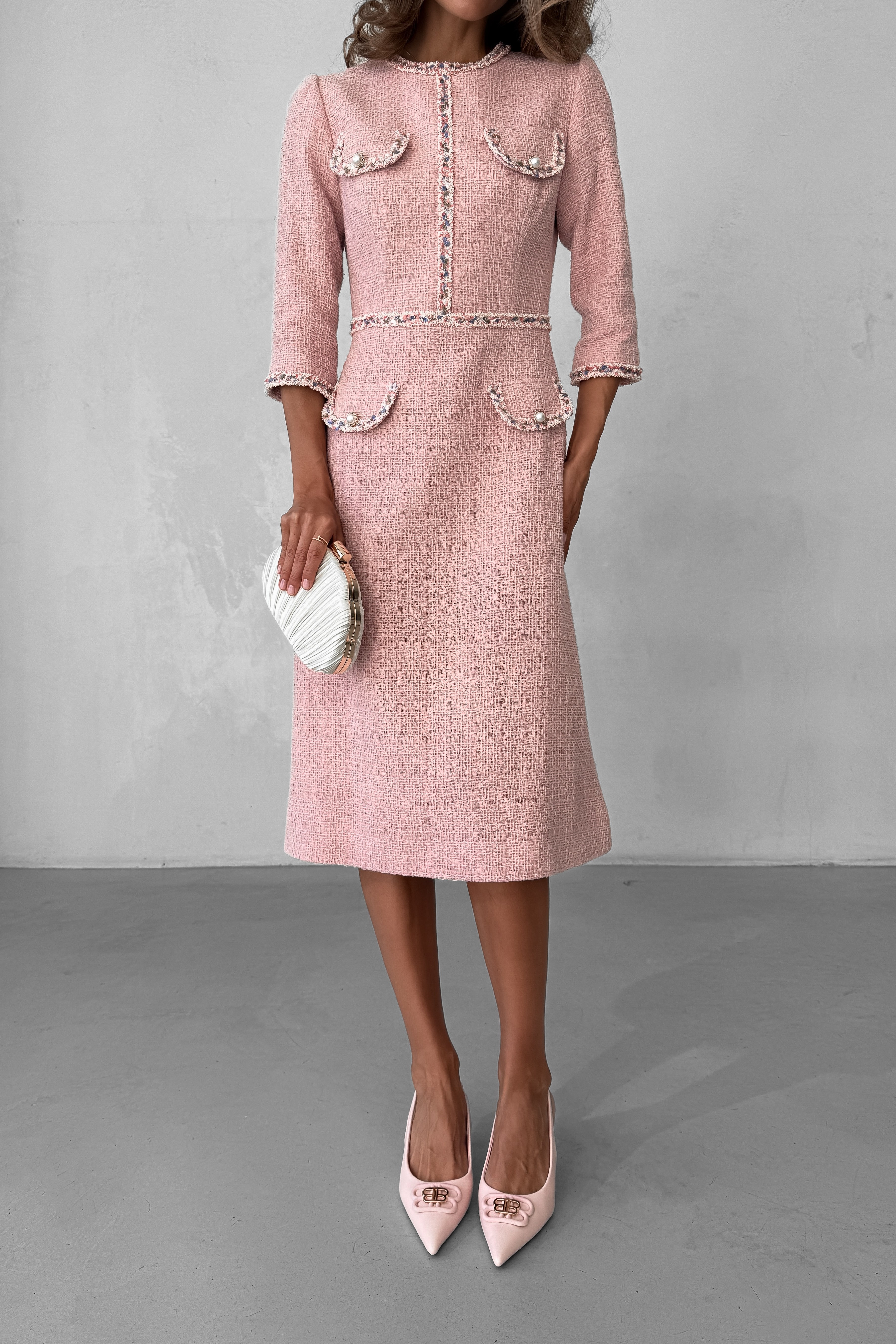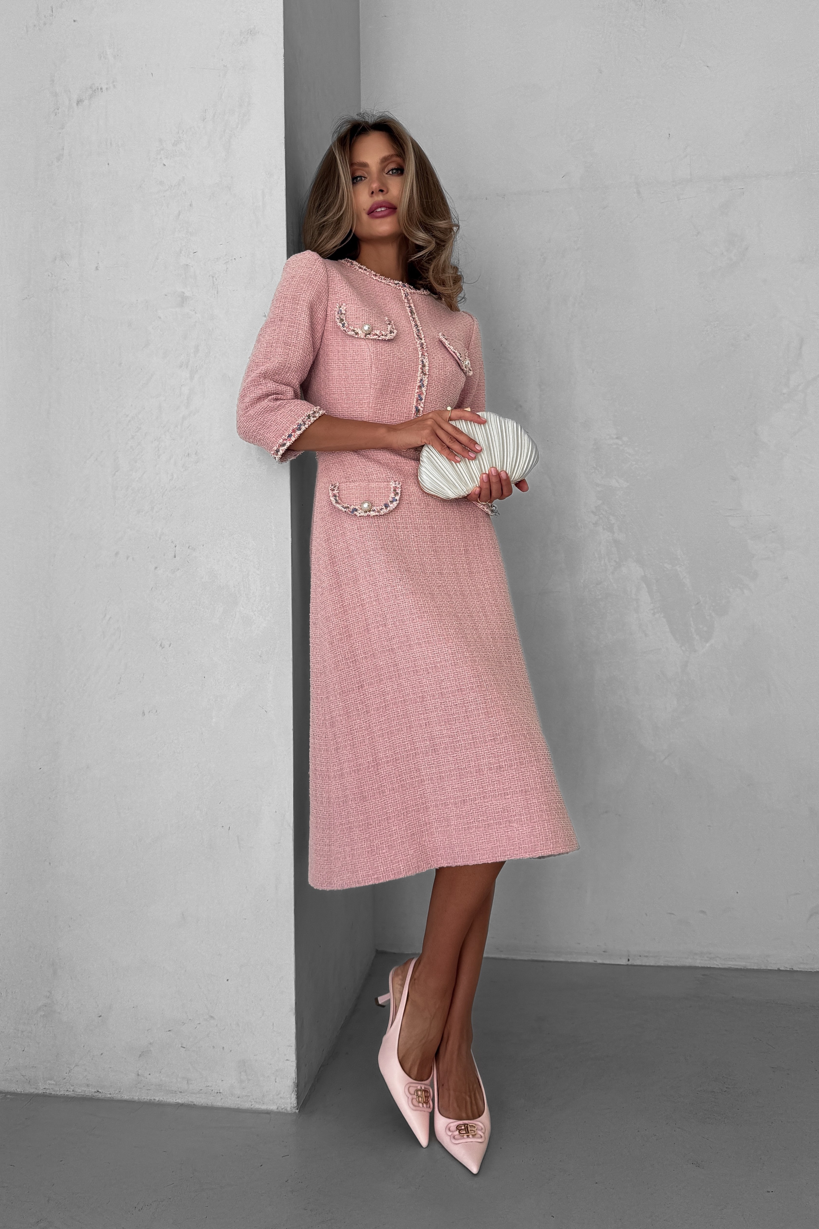 Твидовое платье миди с клапанами, Sarah Berlin