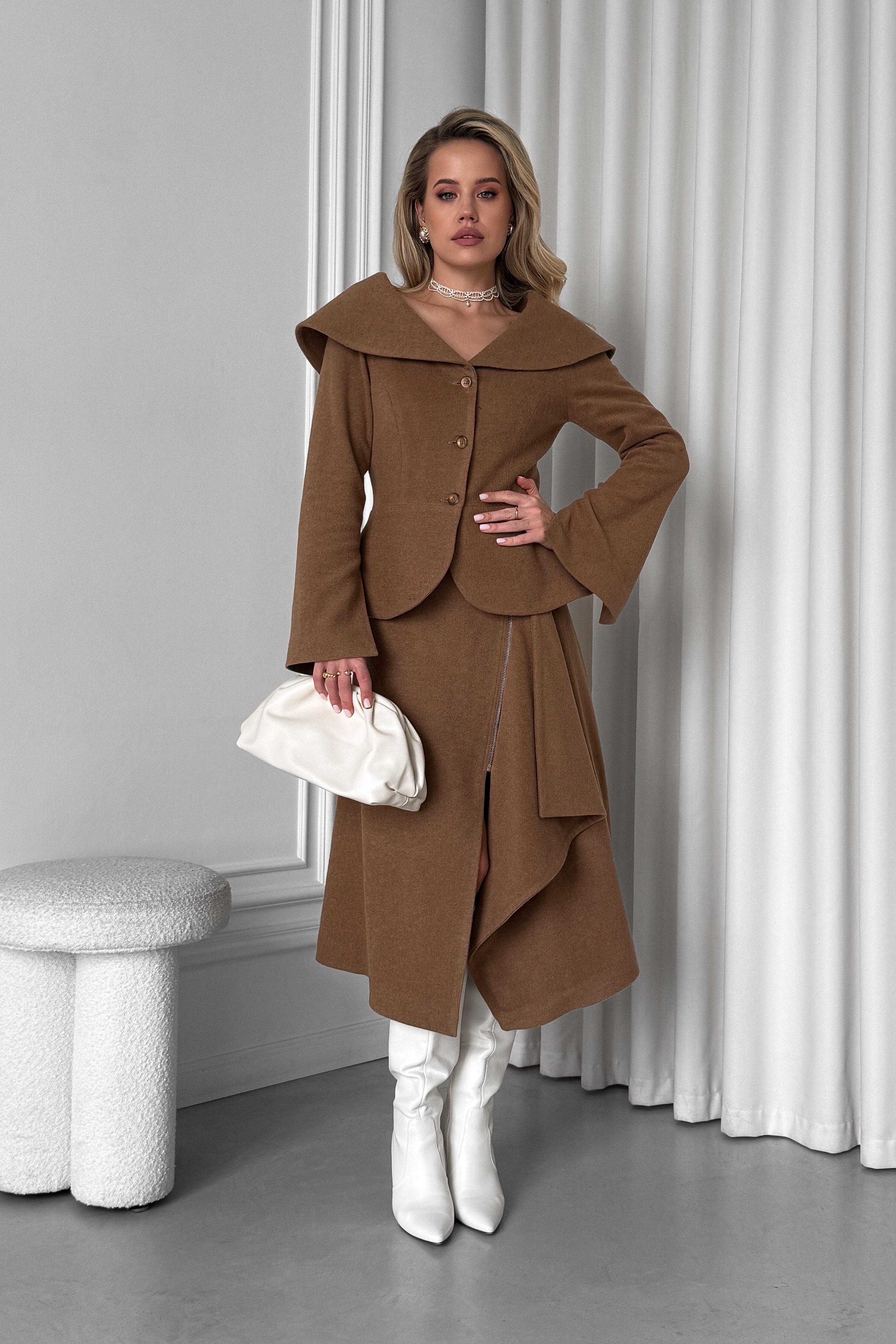 Асиметрична спідниця трапеція з металевою блискавкою з італійської вовняної тканини