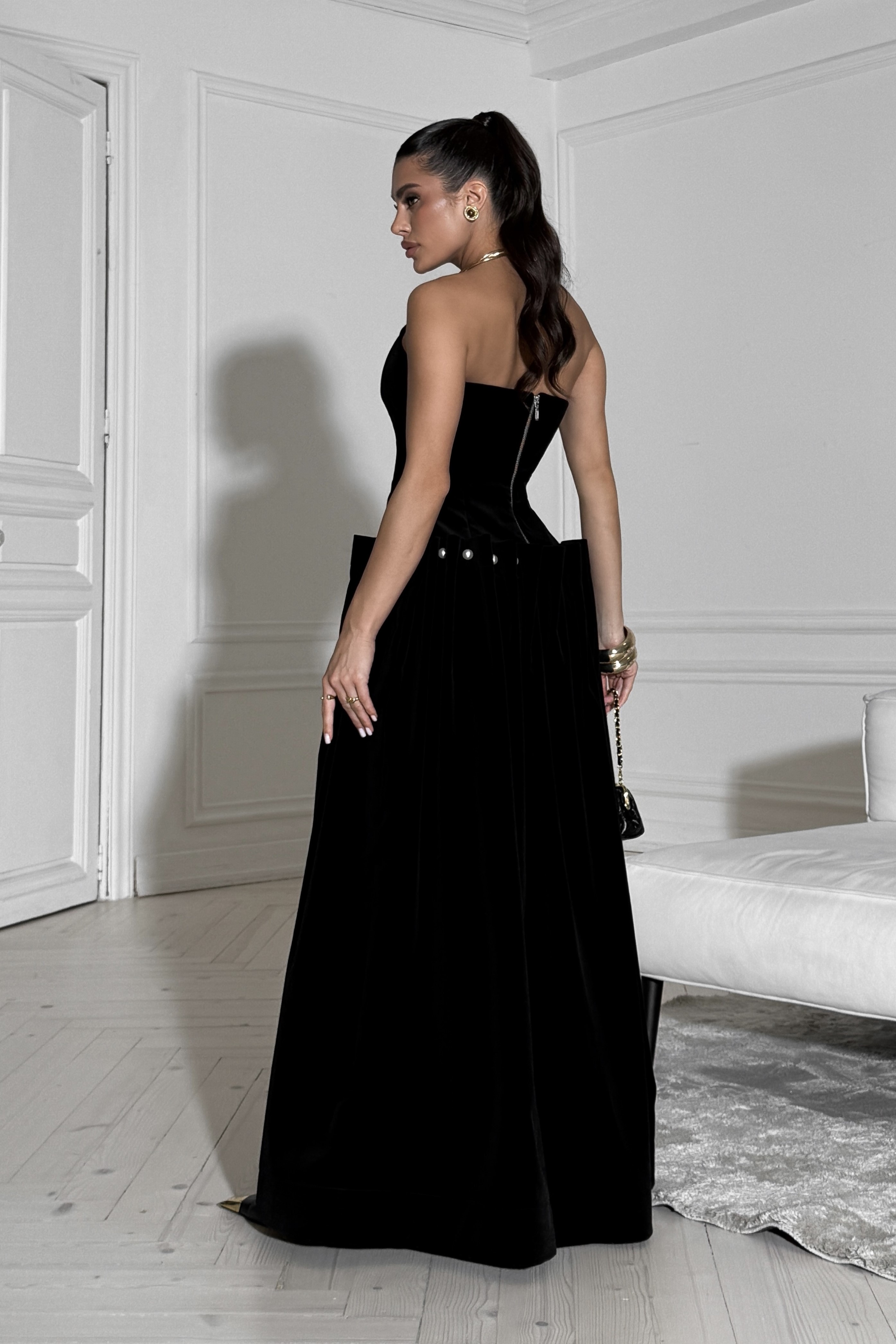 Вечірня довга сукня корсет з італійського оксамиту, з перлами